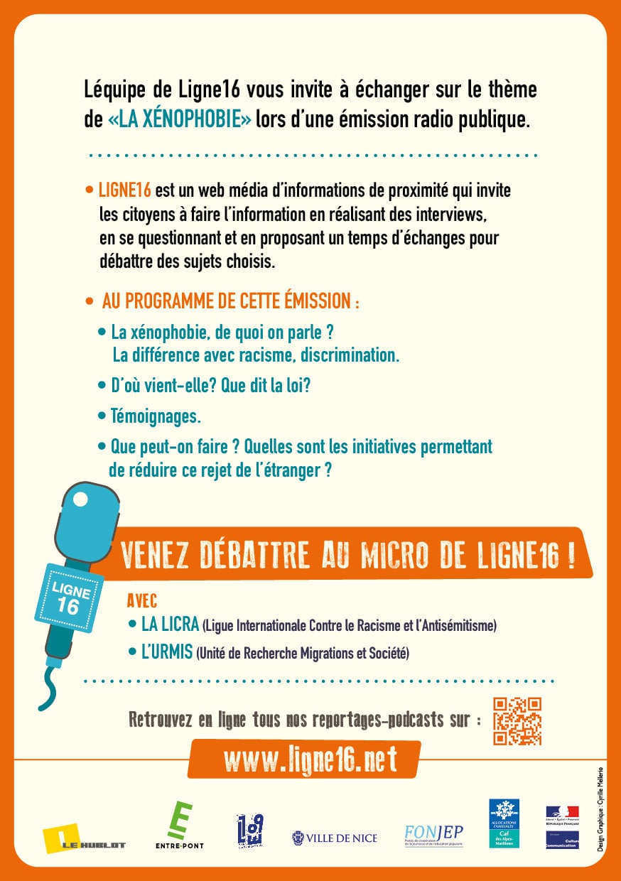 L’équipe de Ligne16 vous invite à échanger sur le thème de « La xénophobie » lors d’une émission radio publique.