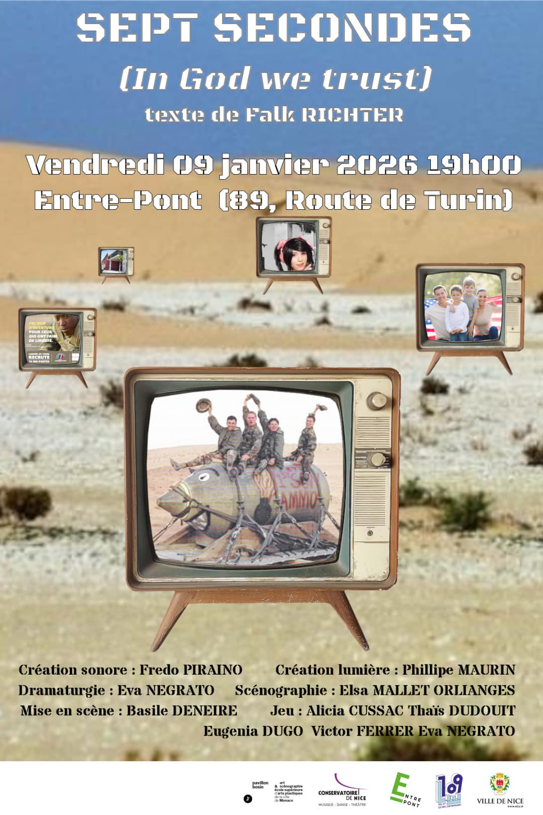 Les élèves du Conservatoire de Nice, en collaboration avec le Pavillon Bosio, présentent leur adaptation et mise en scène de Sept secondes – In God we trust de Falk Richter.