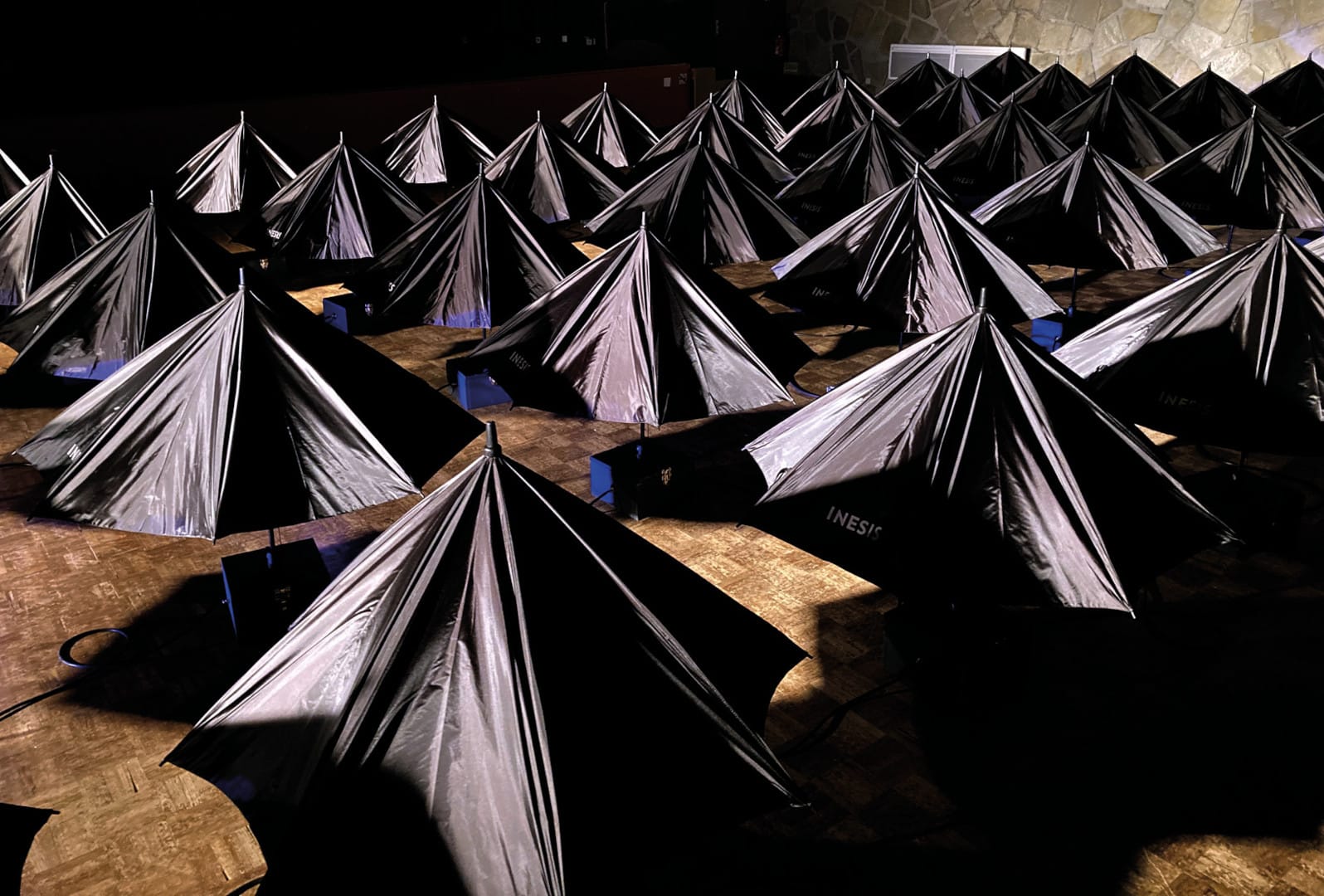 Cet édito, digne d’un roman de science fiction, est encore bien éloigné des possibilités techniques actuelles ! Vous retrouverez toutefois dans l’exposition Artifice une série d’installations cinétiques programmées par des artistes, comme Singin’ in the Rain d’Erik Lorré, une symphonie sonore et visuelle de parapluies qui s’ouvrent et se referment en cadence, DataLine de Stéphane Bissières, une composition sonore causée par le seul enregistrement de datas sur une série de disques durs, Dog[LAB]01 de France Cadet, une œuvre précurseuse et historique sur le hacking de robots chiens, DIYauto de Simon Lazare, une interface tactile pour composer des images et des sons, et enfin Origin of Things, une expérience artistique en réalité virtuelle vous permettant de créer vos propres végétaux en manipulant leurs gènes. Nous pouvons nous demander qui joue avec l’ensemble de ces dispositifs : le public, le hasard ou l’intelligence des artistes numériques ?