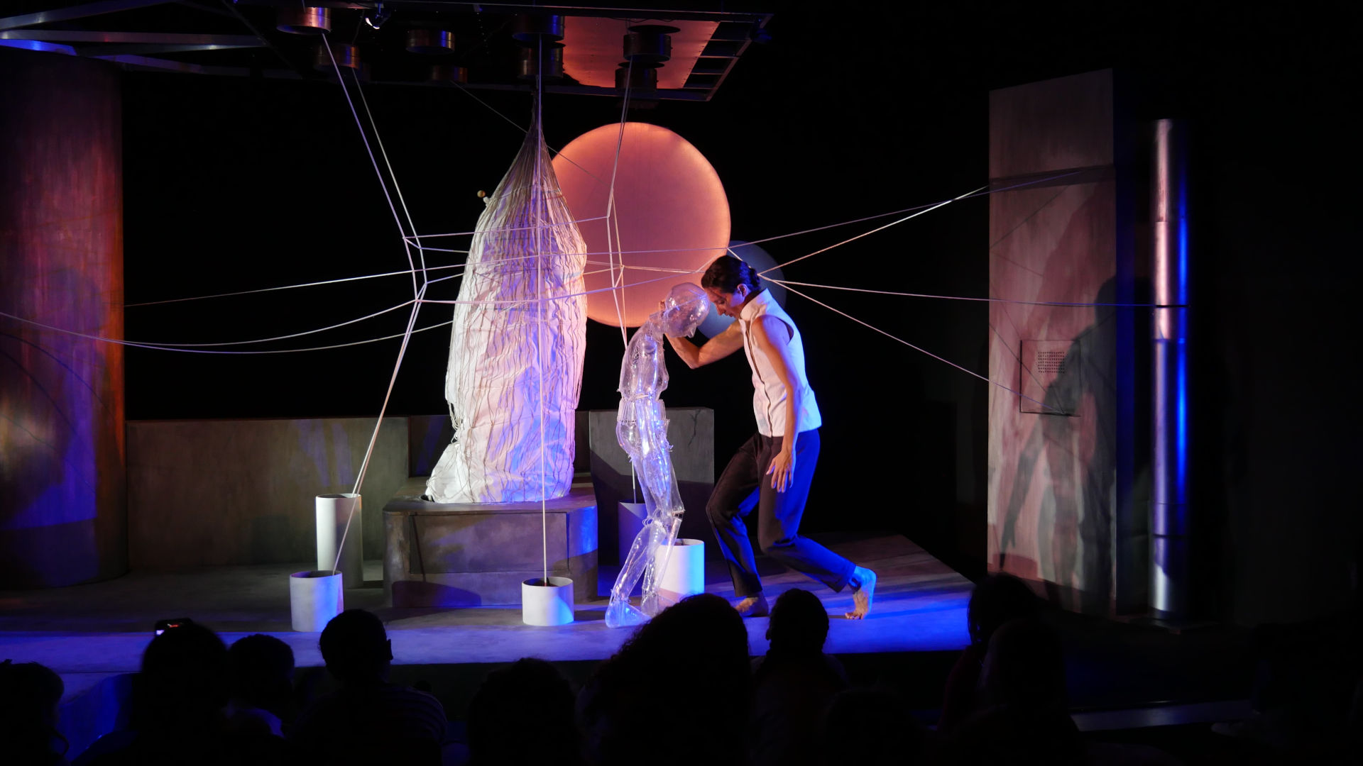 cette inspiration est très libre et ne va puiser que dans une infime partie du roman. De Murakami, Le Théâtre Désaccordé en garde le motif principal, son côté énigmatique et presque mythologique et le pose comme un code inconnu à décrypter. Les “Little People” de l’auteur deviennent des Liteul Pipol de leur jeu et de là, la compagnie s’amuse à créer un « récit marionnettique », en amont du texte et de la parole, où les tout-petits peuvent s’impliquer voire s’identifier et se sentir concernés.